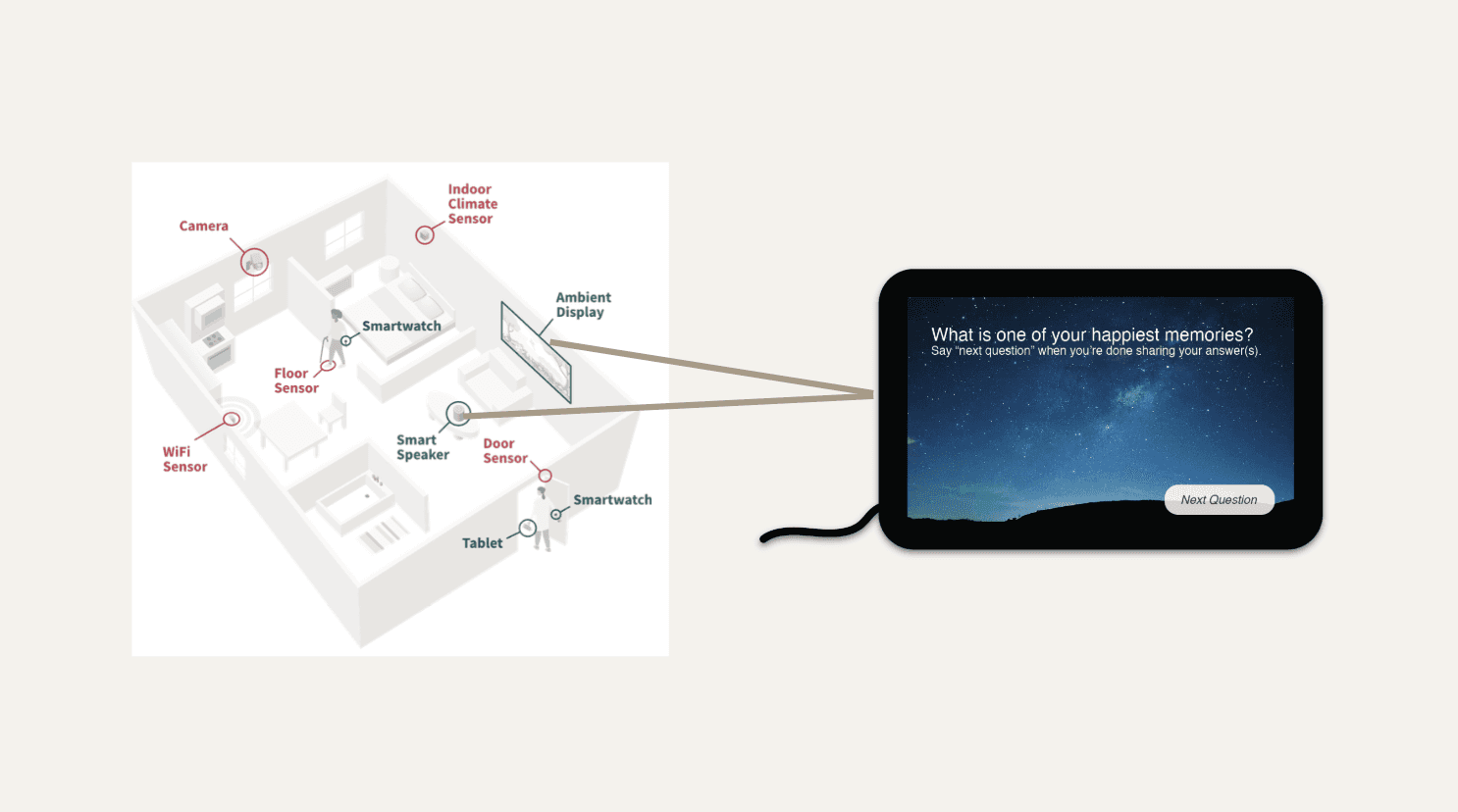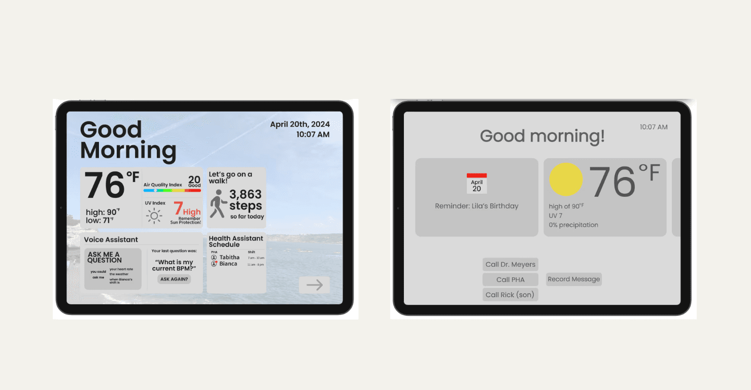 Created mock-ups for an in-home display showing health data from wearables and sensors for older adults.