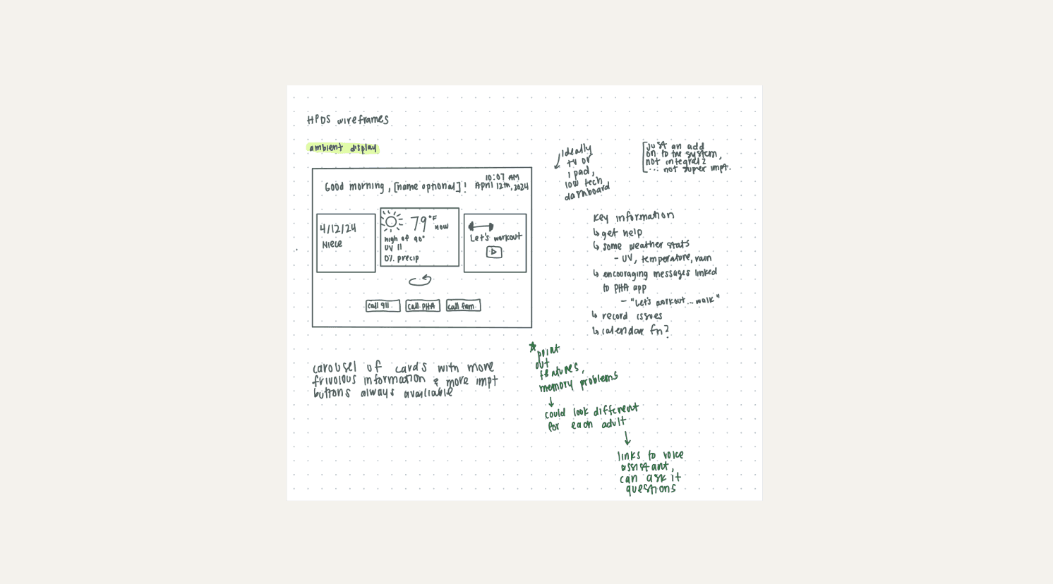 I developed a medium fidelity prototype of the Health Insights Display that was shown at a workshop with older adults and PHAs. There was notable feedback elicited surrounding the impact of the proposed technology from what I developed.