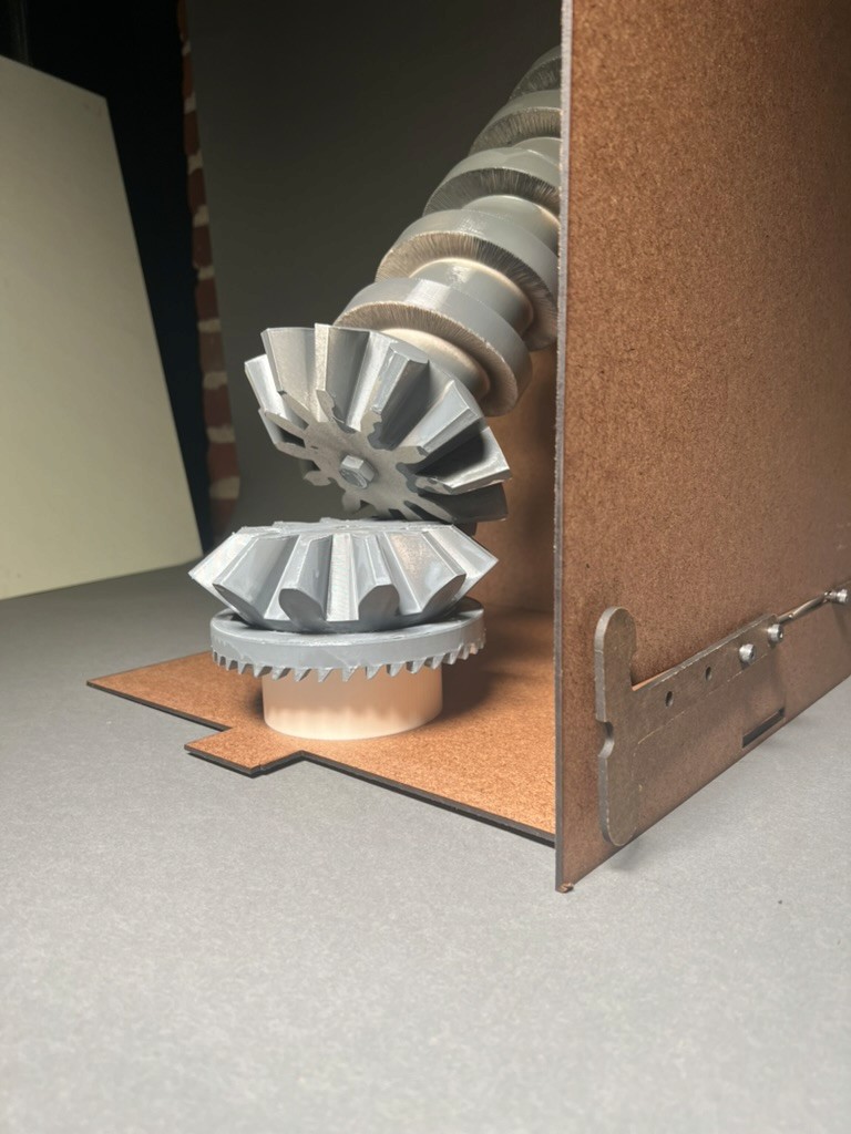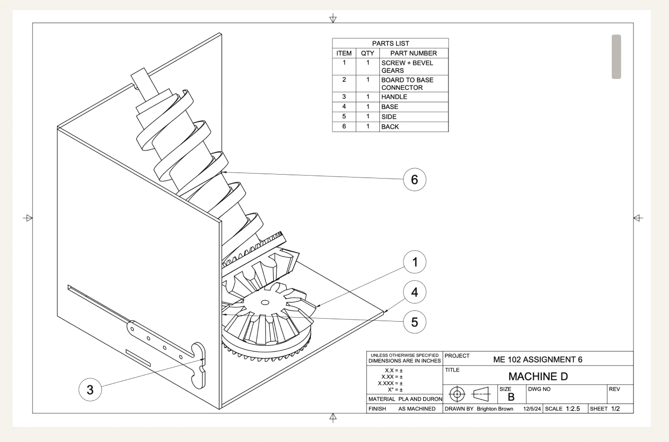 The assignment required creating a functional mechanism inspired by the Archimedes Screw, scaled to transport marbles, while integrating two distinct forces and motions into the design.