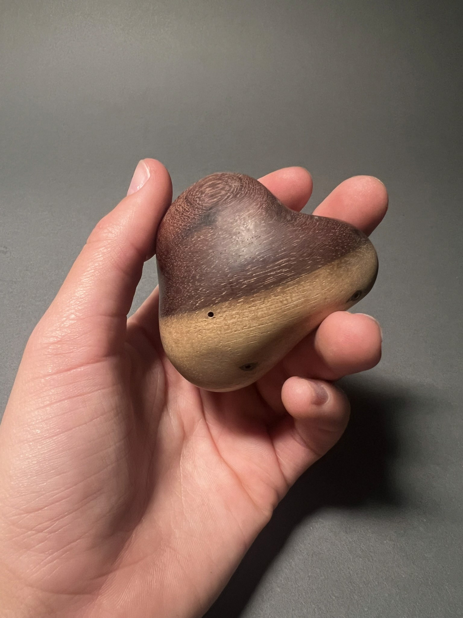 Final object, sanded to 2000 grit, in hand.